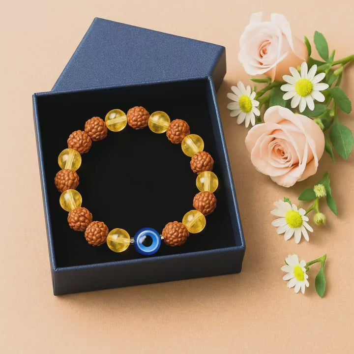 Rudraksha with Citrine Bracelet – Divine Protection & Abundance Energy